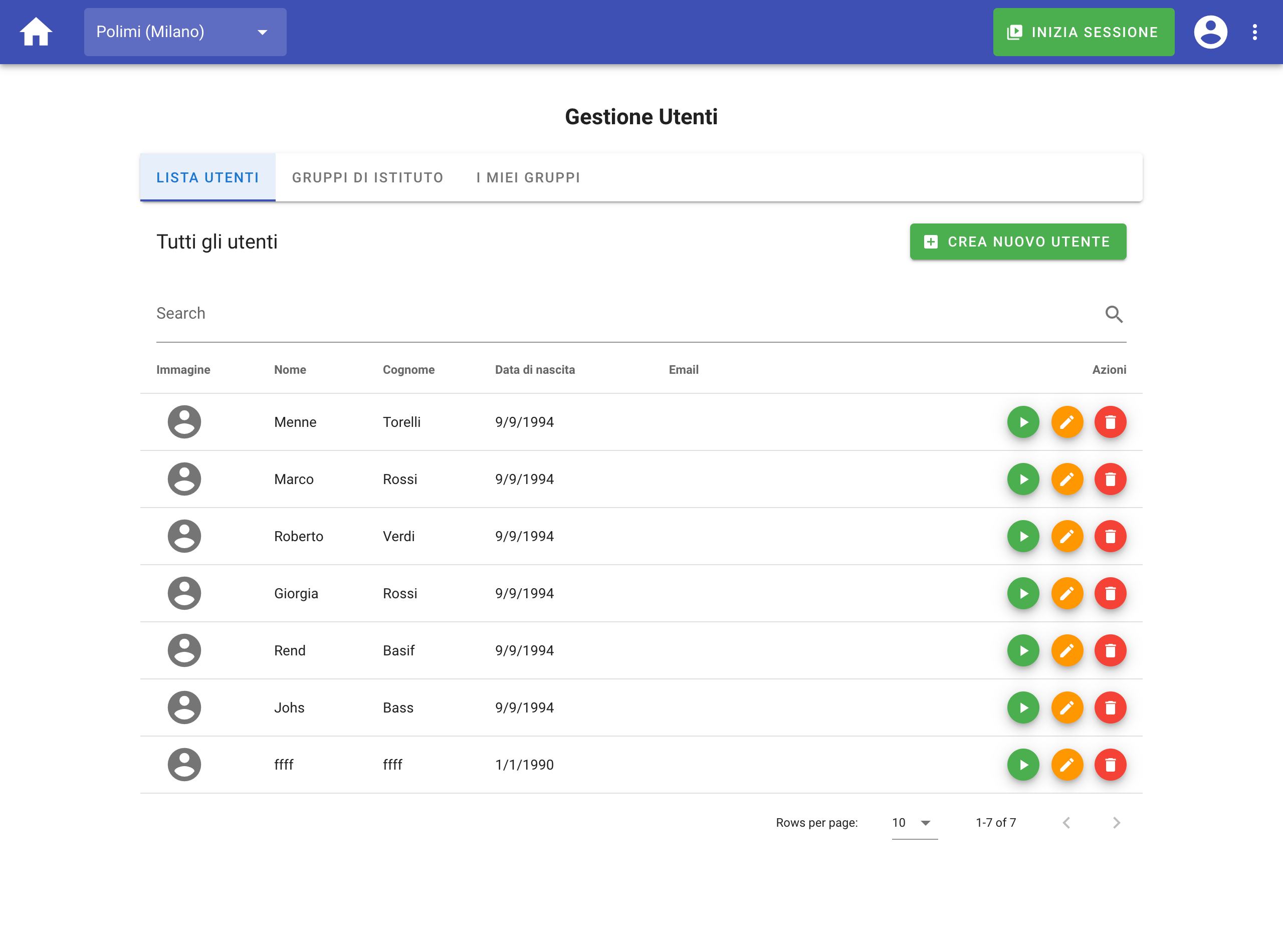 As previously mentioned, when the operator enters the user management page, the list of all the users present within the institution appears. This list can be filtered according to groups.