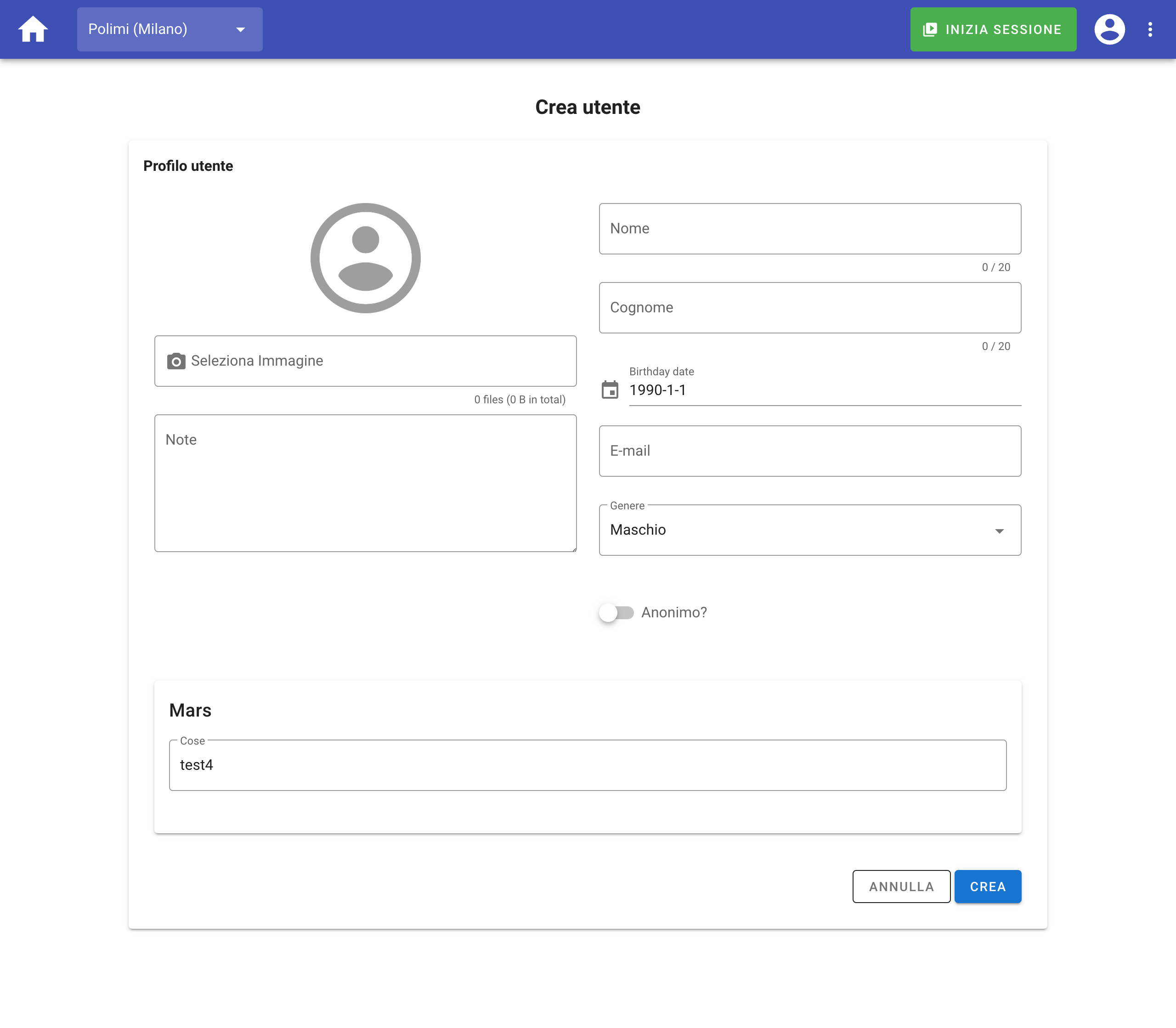 Then, there is the possibility to fill in specific fields that depend on the services available within the selected institution. For example: if the Mars service requires the users to also specify their native language, this will be asked during user registration in the appropriate Mars section.